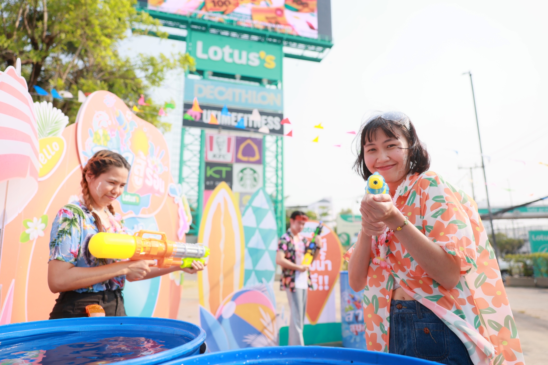 “Lotus’s สงกรานต์ม่วนจอย 2569” ชวนลูกค้ามาสาดความสุขสุดมันกับแคมเปญม่วนฉ่ำในเทศกาลมหาสงกรานต์แบบจัดเต็มครบจบในที่เดียว ทั้งโซนเล่นน้ำ อาหาร และจุดถ่ายภาพ ในบรรยากาศสุดมัน พบกับโซนไฮไลท์ สวนน้ำ ม่วนชื่น ชวนน้อง ๆ หนู ๆ (อายุ 7–15 ปี) มาสนุกกับสวนน้ำบ้านลมขนาดใหญ่ พร้อมสไลเดอร์และโซนเล่นน้ำเพียงกินช้อปในโลตัสครบ 300 บาท (สามารถรวมใบเสร็จภายในวันเดียวกันได้) รับสิทธิ์เข้าเล่น ฟรี 1 ชั่วโมง กับโซน อุโมงค์น้ำ ม่วนฉ่ำ ดับร้อนด้วยละอองน้ำเย็น ๆ ให้ทุกคนได้วิ่งเล่น คลายร้อนแบบเต็มที่ ฟรี! แวะเติมพลังความอร่อยกับโซน ฟู้ดทรัก ม่วนแซ่บ คาราวานฟู้ดทรักจากหลากหลายร้านดัง รวมเมนูคาว หวาน และเครื่องดื่ม ครบจบในที่เดียว พร้อมแลนด์มาร์คคาแรคเตอร์ Cocoon สำหรับถ่ายภาพความประทับใจภายในงาน มาสนุกกับกิจกรรมคลายร้อนได้ตลอดสงกรานต์นี้ที่โลตัส (สาขาที่ร่วมรายการ) ตั้งแต่วันที่ 4-19 เมษายน 2569 (สามารถตรวจสอบสาขาที่ร่วมรายการได้ผ่าน https://my.lotuss.com/promotions/26lotusssmskmall/th?utm_source=facebook )