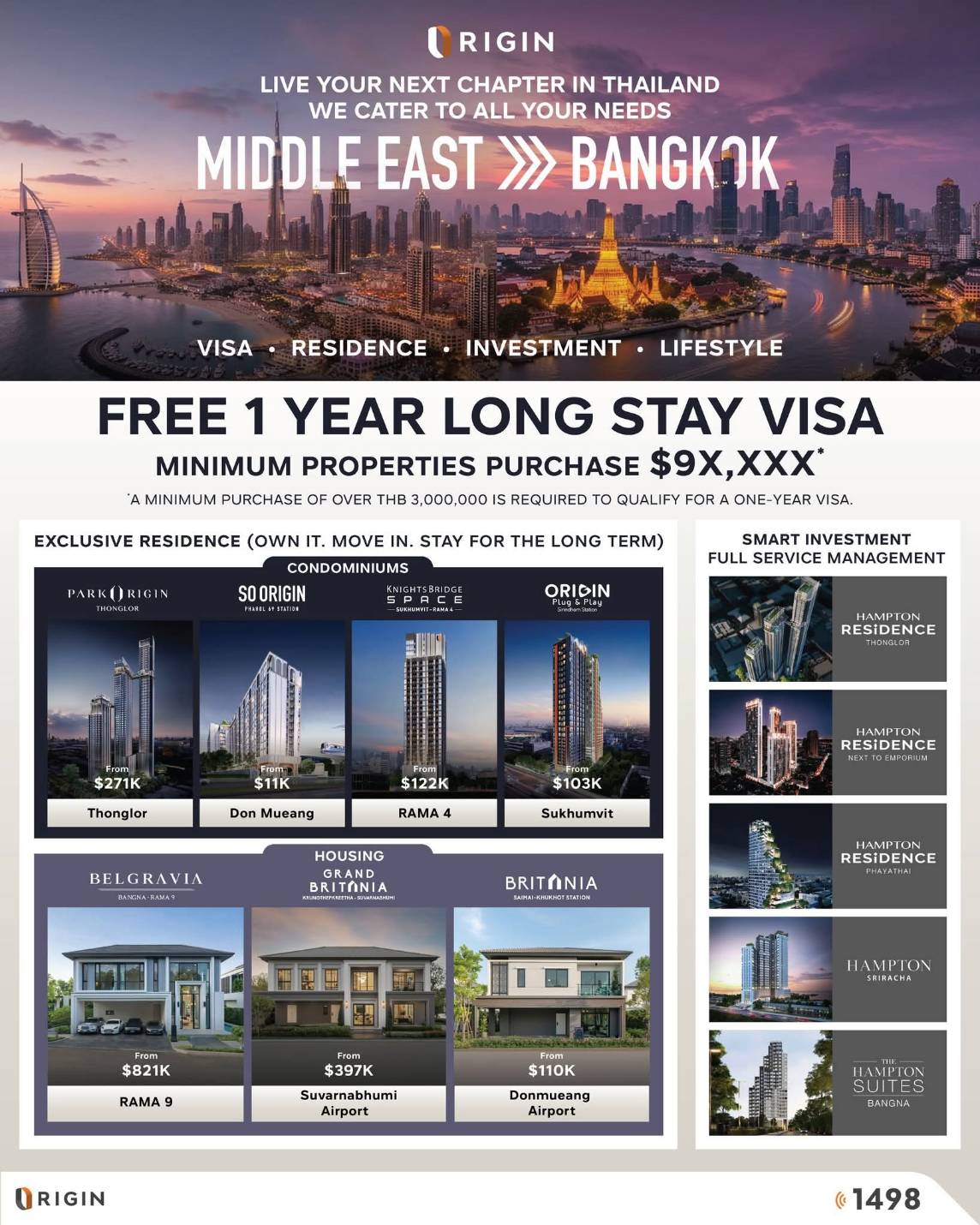 รวมถึงการอำนวยความสะดวกทุกด้าน จาก Thailand Longstay ที่จะช่วยลดความซับซ้อนในกระบวนการซื้อและการพำนักระยะยาว ขณะเดียวกัน ออริจิ้น พร้อมยกระดับด้วยบริการ Relocation Advisory ที่ให้คำปรึกษาแบบครบวงจร (End-to-End) สำหรับชาวต่างชาติ (Expats) และองค์กร ครอบคลุมการหาที่พัก วีซ่า ใบอนุญาตทำงาน การวางแผนด้านการเงิน ไปจนถึงบริการหลังการขาย การขนย้าย ช่วยลดความยุ่งยากและความเครียดในการเปลี่ยนผ่านสถานที่เพื่อให้ลูกค้าสามารถเริ่มต้นชีวิตในประเทศไทยได้อย่างราบรื่น