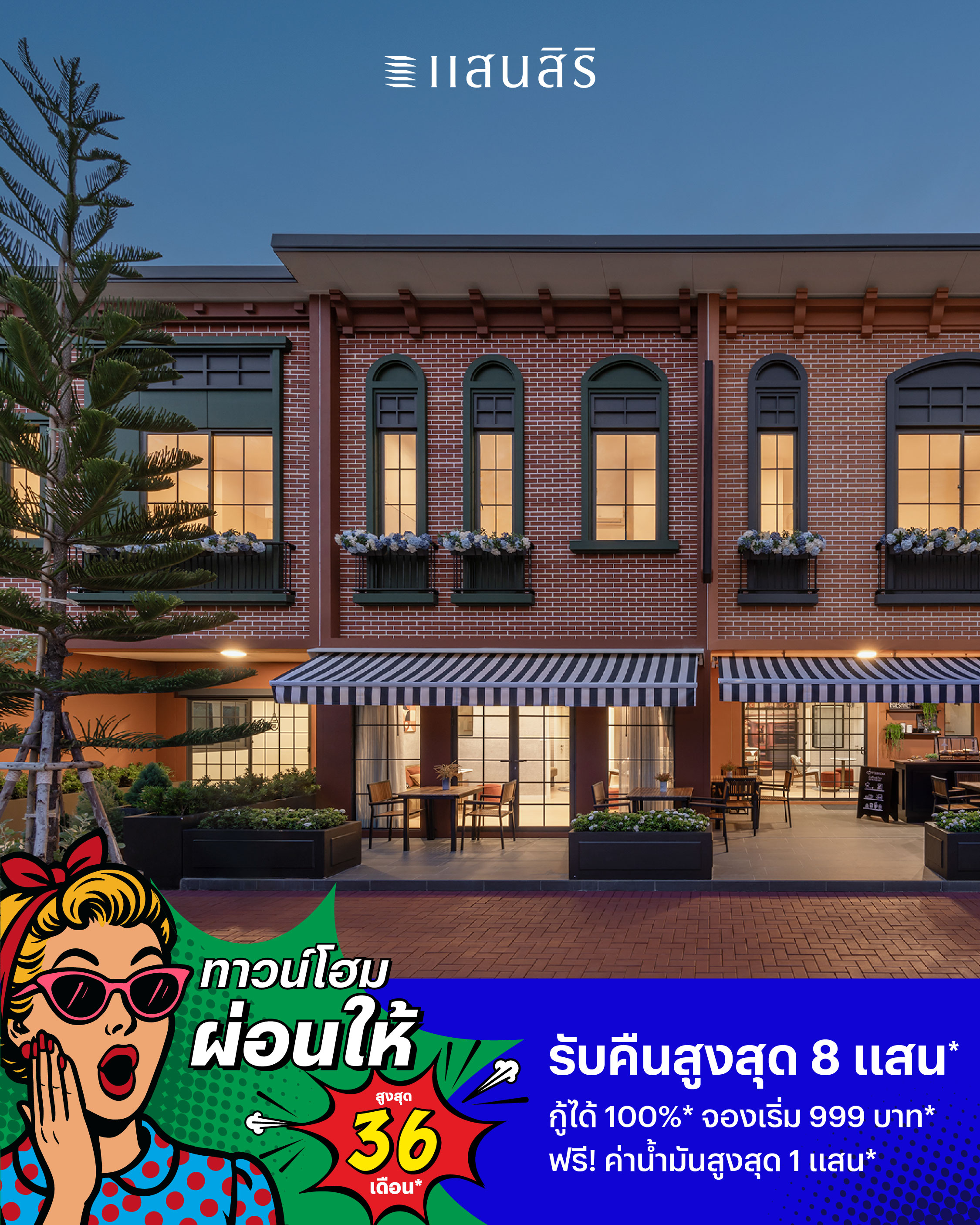 แสนสิริ เติบโตอย่างแข็งแกร่งจากการเป็นแบรนด์ที่เข้าใจลูกค้ามากที่สุด (Top of Mind) ท่ามกลางสภาวะเศรษฐกิจที่ท้าทาย ชูวิสัยทัศน์ “บ้านคือจุดเริ่มต้นของชีวิตและพื้นที่แห่งความมั่นคง” เปิดตัวแคมเปญที่คิดมาจากความเข้าใจลูกค้าและเดินหน้าตามความตั้งใจในการแบ่งเบาภาระ “แสนสิริผ่อนให้ 36 เดือน” จ่ายให้ทั้งต้นทั้งดอก ครอบคลุม 101 โครงการทั่วไทย ทั้งบ้าน ทาวน์โฮม และคอนโดมิเนียม เริ่มต้นเพียง 9 แสนบาท*