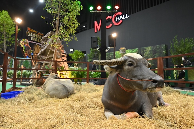 พญาควาย สัตว์ตำนานโบราณของไทย ที่มีลักษณะมงคลหน้าผากขาวรูปโพธิ์, หางขาว, ขาขาวทั้ง 4 ข้าง (เหมือนใส่ถุงเท้าขาว) และกีบเท้าขาว