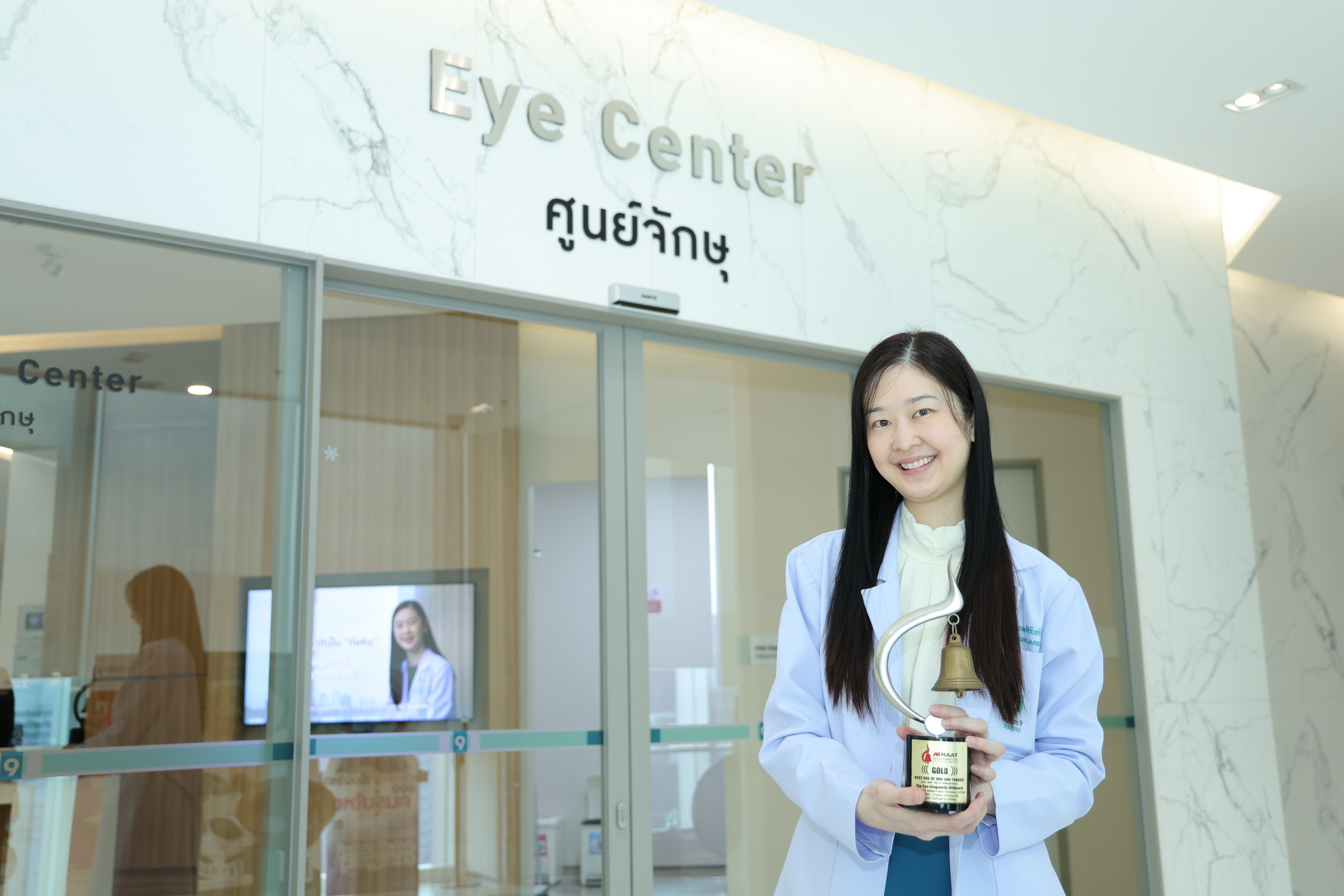 อีกหนึ่งความภาคภูมิใจของโรงพยาบาลพระรามเก้า คือความสำเร็จของผลงาน “The Eye-Diagnostic Billboard” ซึ่งพัฒนาร่วมกับ Plan B Media และได้รับรางวัล Gold Awards สาขา Best Use of OOH and Transit (Sub: Best Use of Non-Movable) จากเวที MAAT Media Awards จัดโดยสมาคมมีเดียเอเยนซี่และธุรกิจสื่อแห่งประเทศไทย (MAAT) ภายใต้แนวคิด “Branded Media: Powering Brands through Media Excellence”