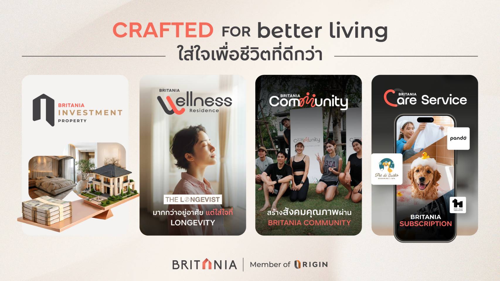 ตลอดระยะเวลา 10 ปีที่ผ่านมา บริทาเนีย ไม่ได้เป็นเพียงผู้พัฒนาโครงการบ้านจัดสรร แต่เรามุ่งมั่นสร้าง Community และไลฟ์สไตล์ที่ตอบโจทย์คนทุกเจเนอเรชัน พร้อมยกระดับสู่ Wellness Residences เพื่อส่งต่อการมีคุณภาพชีวิตที่ดีอย่างยั่งยืน ที่ให้ความสำคัญกับ Longevity หรือ การมีอายุยืนยาวอย่างมีคุณภาพ ทั้งต่อสุขภาพกาย สุขภาพใจ และการใช้ชีวิตในระยะยาว ออกแบบทุกองค์ประกอบของบ้านให้เป็นมากกว่าที่พักอาศัย เพื่อก้าวต่อไปในอนาคตมีความมั่นคงและรองรับการเติบโตได้อย่างเต็มศักยภาพ พร้อมส่งมอบพื้นที่แห่งความสุขและสร้างการเติบโตที่ยั่งยืนไปพร้อมกับทุกครอบครัว