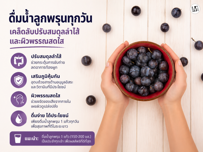 การเลือกดื่มน้ำลูกพรุนทุกวัน ไม่ใช่เพียงแค่การแก้ปัญหาเฉพาะหน้าเรื่องการขับถ่าย แต่คือการสะสม "ต้นทุนสุขภาพ" ที่ดีให้กับระบบการดูดซึมและขับของเสียในร่างกาย เมื่อภายในสะอาด ผิวพรรณและความสดชื่นภายนอกจะสะท้อนออกมาให้เห็นอย่างชัดเจน เริ่มต้นเช้าวันใหม่หรือจบค่ำคืนนี้ด้วยน้ำลูกพรุนสักแก้ว เพื่อก้าวสู่สุขภาวะที่สมดุลอย่างยั่งยืน