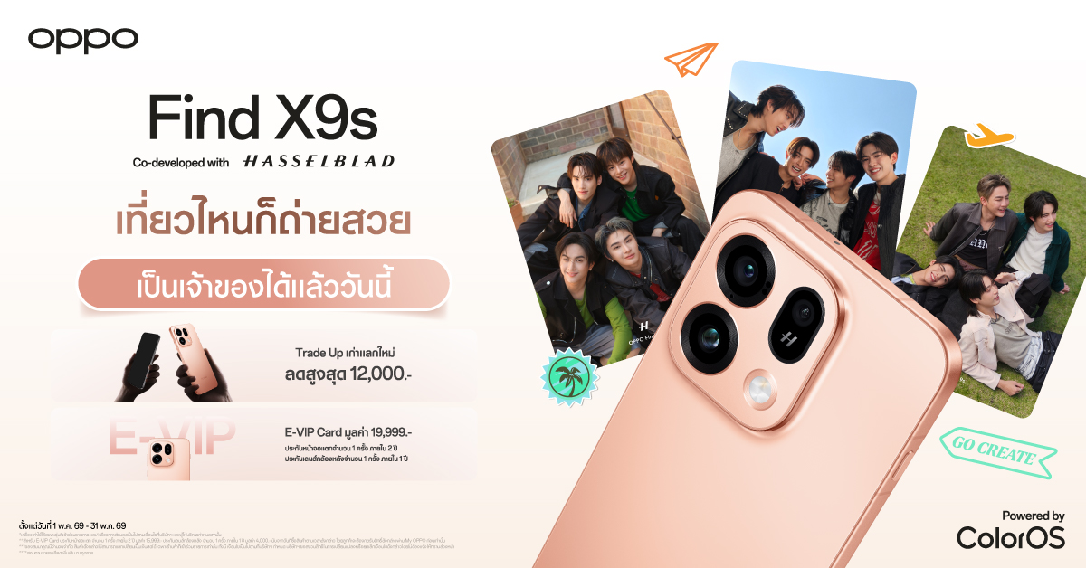 ออปโป้ ประเทศไทย ประกาศวางจำหน่าย “OPPO Find X9 Ultra” อย่างเป็นทางการ สมาร์ตโฟนแฟลกชิปรุ่นใหม่ที่พร้อมพาไปสัมผัสประสบการณ์สมาร์ตโฟนกล้องระดับอัลตราที่แท้จริง ตอบโจทย์คนรุ่นใหม่ที่ชื่นชอบการไปคอนเสิร์ต และสายรักการท่องเที่ยวที่ต้องการภาพถ่ายและวิดีโอคุณภาพระดับมืออาชีพในทุกเฟรม ชูจุดเด่นด้วยกล้องระดับอัลตราที่พัฒนาร่วมกับ Hasselblad แบรนด์กล้องระดับตำนาน กล้อง Hasselblad 50MP เทเลโฟโต้ ซูมออปติคอล 10 เท่า ครั้งแรกในอุตสาหกรรม