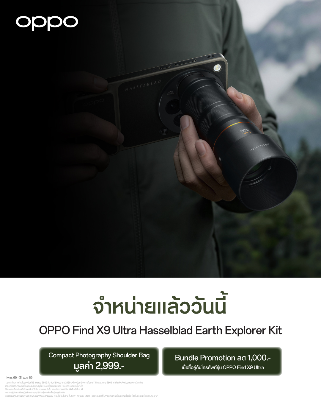 สำหรับลูกค้าที่ซื้อ OPPO Hasselblad Earth Explorer Kit เสริมศักยภาพการถ่ายภาพให้เหนือชั้นยิ่งขึ้น ระหว่างวันที่ 1 พฤษภาคม 2569 ถึง 31 พฤษภาคม 2569 จะได้รับสิทธิพิเศษ ดังต่อไปนี้