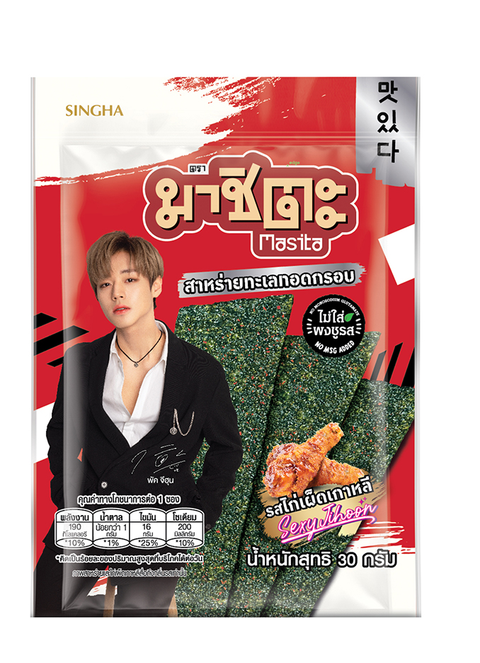 สร้างกระแสความฟินต่อเนื่องตลอดทั้งปี สำหรับสาหร่ายมาชิตะ หลังจากเปิดตัวพรีเซ็นเตอร์ “พัคจีฮุน” พร้อมทั้งปรับสูตรเป็น 0% ผงชูรส ทั้ง 5 รสชาติได้แก่ รสออริจินัล รสสไปซี่ รสสไปซี่บาร์บีคิวเกาหลี รสลาบ รสต้มยำ ไปเมื่อต้นปีที่ผ่านมา ล่าสุด “สาหร่ายมาชิตะ” สร้างปรากฎการณ์ครั้งแรกในวงการตลาดสาหร่ายมูลค่ากว่า 3,000 ล้านบาท ปล่อยรสชาติใหม่ “รสไก่เผ็ดเกาหลี” รส Signature โดย “พัคจีฮุน” ศิลปินเกาหลีร่วมเป็น “Creator” หรือผู้คิดและสร้างสรรค์รสชาติใหม่ในครั้งนี้ ซึ่งเป็นรสชาติที่มีเอกลักษณ์เฉพาะของพัคจีฮุนเท่านั้น เรียกว่าเขย่าวงการตลาดสาหร่ายกับซีรีส์เผ็ดร้อนระลอกใหม่