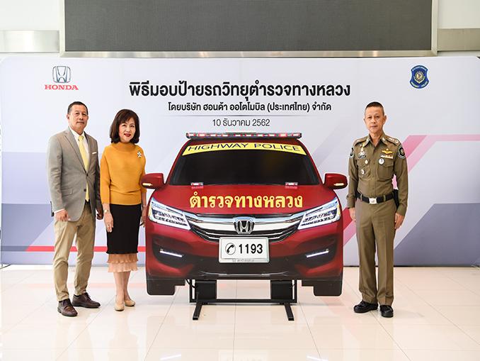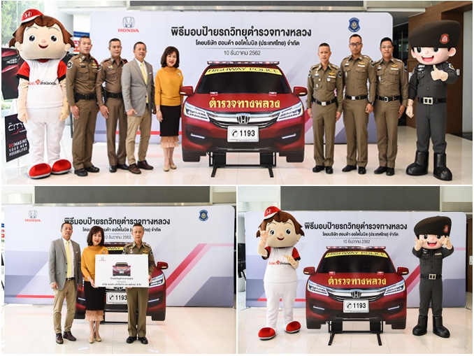 ช่วงเทศกาลปีใหม่และเทศกาลสงกรานต์ เป็นช่วงเทศกาลวันหยุดยาวที่ประชาชนจำนวนมากมีการวางแผนเดินทางกลับภูมิลำเนาและขับรถเดินทางท่องเที่ยวทางไกล จึงทำให้มีสถิติการเกิดอุบัติเหตุบนท้องถนนสูง ฮอนด้าตระหนักถึงปัญหาดังกล่าว และได้ให้ความสำคัญกับความปลอดภัยบนท้องถนนมาโดยตลอด จึงได้สนับสนุนอุปกรณ์ป้ายรูปรถวิทยุตำรวจทางหลวงพร้อมอุปกรณ์ส่องสว่าง ขนาดเท่ารถยนต์จริง จำนวน 40 ป้าย ให้กับกองบังคับการตำรวจทางตรวจ โดยมีวัตถุประสงค์เพื่อร่วมลดอุบัติเหตุและป้องกันการสูญเสียที่อาจจะเกิดขึ้น นอกจากนี้ ยังเป็นการเดินหน้าสู่เป้าหมายการสร้างสังคมปลอดอุบัติเหตุ (Collision Free Society) ให้เกิดขึ้นอย่างยั่งยืน ตามวิสัยทัศน์ฮอนด้าปี 2030 อีกด้วย