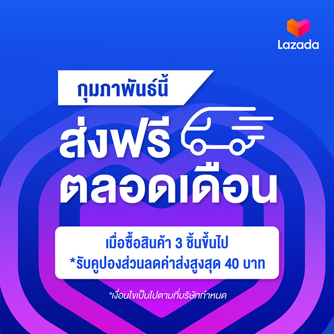 ลาซาด้า ผู้นำอีคอมเมิร์ซแห่งเอเชียตะวันออกเฉียงใต้ เปิดแคมเปญส่งฟรีตลอดเดือนกุมภาพันธ์ ต้อนรับเดือนแห่งความรัก เอาใจเหล่านักช้อปที่กำลังมองหาของขวัญสำหรับเทศกาลวาเลนไทน์ ด้วยคูปองส่วนลดค่าส่ง 40 บาท เมื่อซื้อสินค้า 3 ชิ้นขึ้นไป ช้อปกันแบบสุดคุ้มทั้งเดือน ตั้งแต่วันที่ 4 – 29 กุมภาพันธ์ 2563 พร้อมพบ Flash Sale โฉมใหม่ ให้ช้อปแบบจุใจได้ตลอดทั้งวัน ไม่จำกัดเวลา 24 ชั่วโมง