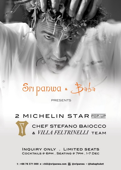 สำหรับผู้ที่ชื่นชอบอาหารอิตาเลียนต้องไม่พลาดงานนี้ เมื่อ "ศรีพันวา ภูเก็ต" สร้างปรากฏการณ์ครั้งสำคัญด้วยการเนรมิตรสุดยอดดินเนอร์หรูส่งท้ายปีพร้อมเหล่าเชฟระดับมิชลินสตาร์จากอิตาลี นำโดย เชฟ สเตฟาโน ไบอ็อกโค (Chef Stefano Baiocco) เชฟชื่อดังจากโรงแรมอันดับ 1 ใน 5 ของโลก ที่บินตรงจากมิลานมาร่วมรังสรรค์เมนูสุดพิเศษตลอด 7 ค่ำคืนในช่วงเดือนธันวาคมนี้ เพื่อมอบประสบการณ์ความอร่อยของรสชาติอาหารสไตล์อิตาเลียนและเติมเต็มค่ำคืนที่น่าประทับใจให้กับทุกคนที่มาเยือนศรีพันวา