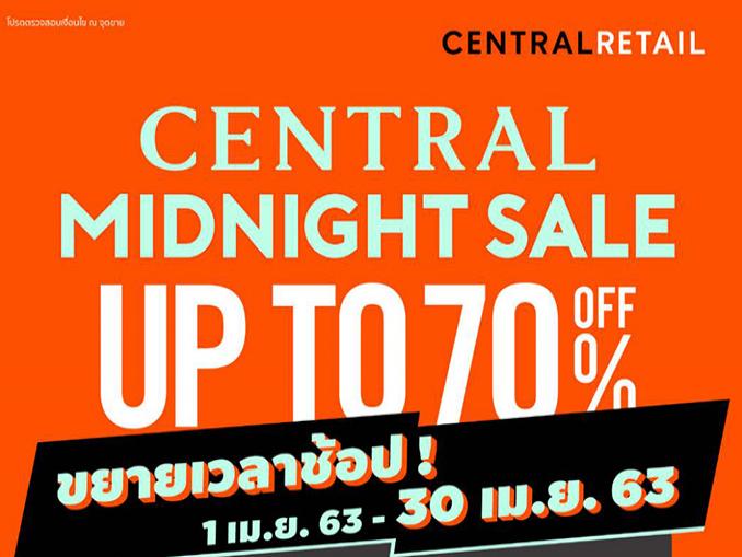 ห้างเซ็นทรัล ขยายเวลาจัดรายการ “CENTRAL MIDNIGHT SALE” (เซ็นทรัล มิดไนท์ เซล) งานเซลที่ทุกคนรอคอย ระหว่าง 1-30 เม.ย. 63 เดินหน้ารุกออนไลน์เต็มรูปแบบ พร้อมจัดทีมคอยอำนวยความสะดวกให้ลูกค้าช้อปสบายเสมือนยกห้างมาไว้ที่คุณ และยังมอบสิทธิพิเศษที่นักช้อปตัวจริงพลาดไม่ได้!! อาทิ สินค้าแบรนด์ดังลดสูงสุด 70% (เฉพาะรุ่น / แบรนด์), ลด/รับเพิ่มสูงสุด 37% จากเดอะวันและบัตรเครดิต พร้อมรับฟรี ! คูปองแทนเงินสดและเครดิตเงินคืนจากบัตรเครดิตเซ็นทรัลเดอะวัน เมื่อช้อปตามเงื่อนไข โดยให้ช้อปง่าย สะดวกสบาย อยู่ที่บ้าน ผ่าน 3 ช่องทางออนไลน์ พร้อมบริการส่งฟรีถึงบ้าน ไม่มีขั้นต่ำ ดังนี้