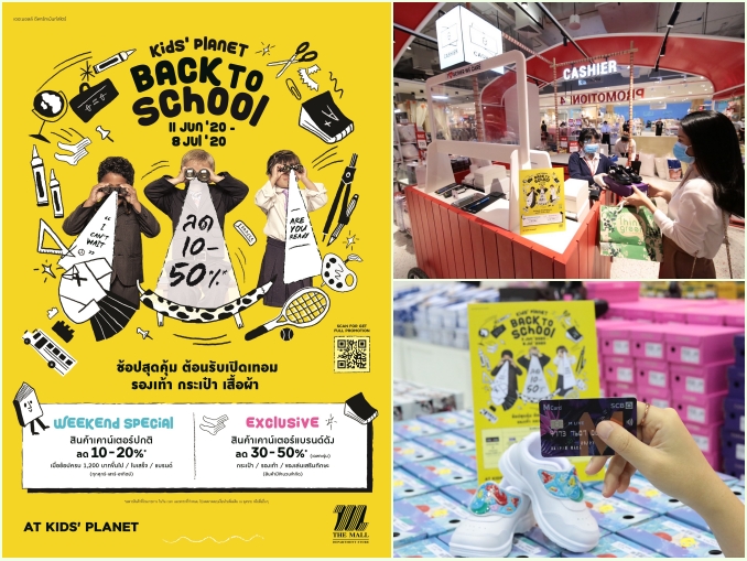 โดยแผนก KIDS’ PLANET ได้จัดแคมเปญ “KIDS’ PLANET BACK TO SCHOOL” ตั้งแต่วันนี้ - 8 กรกฎาคม 2563 ที่ เดอะมอลล์ ทุกสาขา (ยกเว้นรามคำแหง) มอบโปรโมชั่นพิเศษ รวบรวมสินค้าและอุปกรณ์จำเป็นสำหรับน้องๆ นักเรียน เพื่ออำนวยความสะดวกให้กับผู้ปกครองได้จับจ่ายซื้อสินค้าในราคาประหยัดทั้ง เสื้อผ้า รองเท้า ถุงเท้า กระเป๋า สินค้าเสริมทักษะ แบรนด์ชั้นนำลดสูงสุด 50% อาทิ รองเท้านักเรียน : จากแบรนด์ BREAKER, POPTEEN, CATCHA, GERRY GANG, GOLD CITY และ ADDA, กระเป๋านักเรียน กระเป๋าดินสอ กระติกน้ำ : จากแบรนด์ UEK, อุปกรณ์การเรียน ของเล่นเสริมทักษะ : จากแบรนด์ MASTERART, ตราช้าง, DOUBLE A และ WONDERWORLD, เสื้อผ้า รองเท้า แฟชั่นเด็ก : จากแบรนด์ ADIDAS KIDS, BESSON JOUJOU และ LEE KIDS, ชุดชั้นในเด็กหญิง-เด็กชาย : จากแบรนด์ CARSON KIDS และสินค้าอื่นๆอีกมากมาย พร้อมกันนี้ทุกวัน ศุกร์ เสาร์ อาทิตย์ พบกับ Weekend Special สินค้าเคาน์เตอร์ปกติ ลดสูงสุด 20% เมื่อช้อปครบ 1,200 บาทขึ้นไป / ใบเสร็จ / แบรนด์