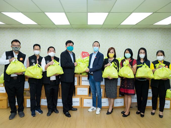 นายชุติเดช ชยุติ (กลางขวา) รองประธานเจ้าหน้าที่บริหารอาวุโส - คอร์ปอเรท ไฟแนนซ์ บริษัท บัตรกรุงไทย จำกัด (มหาชน) หรือ “เคทีซี” ส่งมอบถุงปันสุขพร้อมด้วยเครื่องอุปโภค-บริโภคที่จำเป็นต่อการใช้ชีวิต อาทิ ข้าวสาร น้ำดื่ม นม น้ำพริก บะหมี่กึ่งสำเร็จรูป น้ำมันพืช อาหารกระป๋อง ของใช้เบ็ดเตล็ดและหน้ากากอนามัย ซึ่งมาจากความร่วมมือร่วมใจกันบริจาคของผู้บริหารและพนักงานเคทีซี เพื่อช่วยบรรเทาความเดือดร้อนให้กับคนใน 17 ชุมชนพื้นที่เขตวัฒนา ที่ได้รับผลกระทบจากการแพร่ระบาดของเชื้อไวรัสโคโรนา 2019 (โควิด-19) โดยมีนายสุชัย สกุลรุ่งเรืองชัย (กลางซ้าย) ผู้อำนวยการเขตวัฒนา พร้อมด้วยคณะผู้บริหารสำนักงานเขตวัฒนา เป็นผู้รับมอบ ณ สำนักงานเขตวัฒนา เมื่อเร็วๆนี้