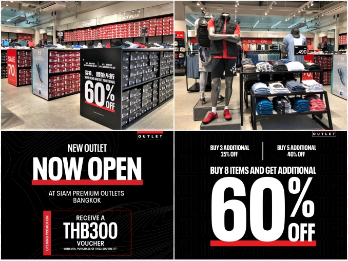 Under Armour (อันเดอร์ อาร์เมอร์) แบรนด์เสื้อผ้าและอุปกรณ์กีฬาชั้นนำจากประเทศสหรัฐอเมริกาเดินหน้าขยายสาขาอย่างต่อเนื่อง โดยล่าสุดเปิดตัวสาขาใหม่ที่ สยาม พรีเมี่ยม เอาท์เล็ต กรุงเทพ เอาใจนักช้อปสายกีฬาพร้อมโปรโมชันสูงสุดถึง 60%