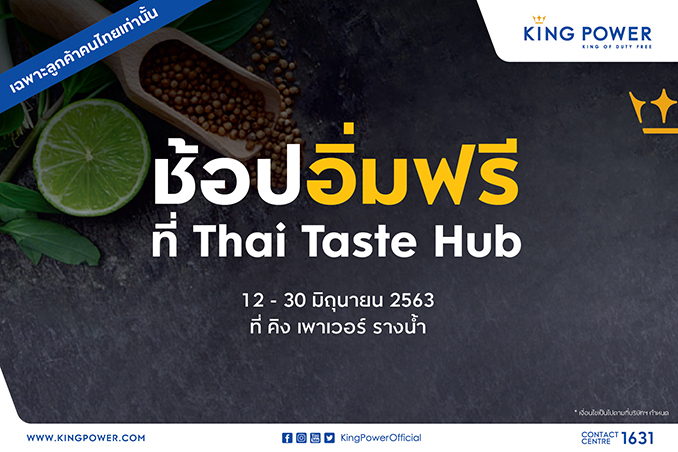 คิง เพาเวอร์ เดินหน้าขับเคลื่อนธุรกิจ แบบครบวงจรทั้งออฟไลน์และออนไลน์ จัดแคมเปญพิเศษ “THANK YOU FOR STAYING SAVE AND SAFE” เพื่อขอบคุณคนไทยที่ร่วมใจ อยู่บ้านหยุดเชื้อเพื่อชาติ โดย “ขอบคุณ” ผ่านสิทธิประโยชน์จากการช้อปปิ้งที่เชื่อมโยงแบบครบวงจร โดยลูกค้าสามารถช้อปที่ คิง เพาเวอร์ รางน้ำ กับสินค้า Home Delivery รับส่วนลด On Top 5% และบริการจัดส่งถึงบ้านภายใน 7 วัน พร้อมสิทธิพิเศษให้กับลูกค้าที่ซื้อสินค้าลักซ์ชัวรีแบรนด์ ในราคาดิวตี้ฟรี ในการรับส่วนลดสูงสุด 20% โดยไม่ต้องมีไฟลท์บิน พิเศษ !! เมื่อช้อปสินค้า 2,000 บาทขึ้นไป (สุทธิ)/ ใบเสร็จ รับคูปองใช้แทนเงินสด 300 บาท ให้คุณไปอิ่มแบบจัดเต็มกับอาหารสตีทฟู๊ดจากร้านดังในโซน Thai Taste Hub (จำกัด 10 สิทธิ์/ท่าน/วัน)