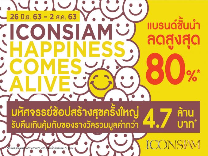 ไอคอนสยาม แลนด์มาร์คสำคัญของไทยริมแม่น้ำเจ้าพระยา จัดแคมเปญ “ICONSIAM Happiness Comes Alive” มอบประสบการณ์ความสุขและรอยยิ้มให้ทุกคน ยกขบวนแบรนด์ชั้นนำลดราคาครั้งใหญ่สูงสุด 80% พร้อมของรางวัลและสิทธิประโยชน์แบบเกินคุ้มมูลค่ารวมกว่า 4.7 ล้านบาท ตั้งแต่ 26 มิถุนายน – 2 สิงหาคม ศกนี้ ณ ไอคอนสยาม ถนนเจริญนคร
