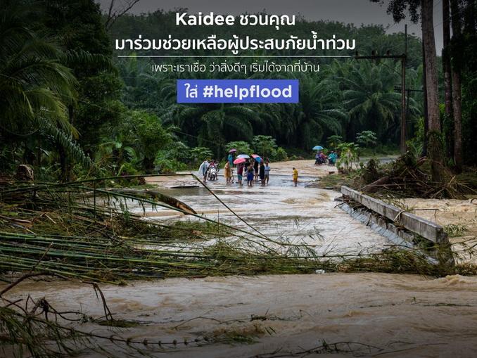 Kaidee (ขายดี) แหล่งซื้อ-ขายของมือสองออนไลน์ที่ใหญ่ที่สุดในประเทศไทย ชวนคนไทยร่วมส่งความช่วยเหลือให้พี่น้องผู้ประสบภัยน้ำท่วมในภาคใต้ ณ ขณะนี้ ด้วยวิธีง่ายๆ ที่คุณสามารถทำได้เองที่บ้าน เพียงแค่ลงประกาศขายของที่ไม่ได้ใช้แล้วใส่แฮชแท็ก #helpflood ในช่องรายละเอียดสินค้า โดยทุกๆ ประกาศที่มีแฮชแท็กนี้ Kaidee ร่วมบริจาคประกาศละ 10 บาทผ่านทางกองทุนช่วยเหลือผู้ประสบสาธารณภัยสำนักนายกรัฐมนตรี ทำเนียบรัฐบาล (รวมยอดเงินบริจาคสูงสุด 100,000 บาท)