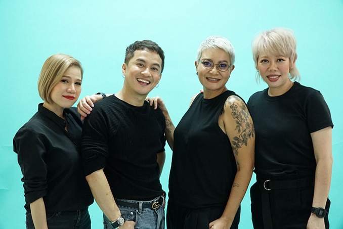 4 ตัวแทนช่างผมยุคใหม่ได้สาธิตเทคนิคของ Chroma ID ระหว่างการเปิดตัวผ่านเฟสบุ๊ค Schwarzkopf Professional Thailand