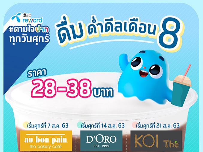 ดีแทค รีวอร์ด มอบสิทธิพิเศษเดือนสิงหาคมในช่วงวันแม่ พร้อมดื่มด่ำกับเครื่องดื่มแบรนด์ดัง ให้ลูกค้าได้ชวนคุณแม่ดูหนังชั้นเฟิร์สคลาส และที่นั่งดีลักซ์ที่โรงภาพยนต์ SF ทั่วประเทศ และอร่อยชื่นใจกับไอศครีมเค้ก Swensen’s ในราคาพิเศษ พร้อมรับสิทธิพิเศษในแคมเปญ #ตามใจปากทุกวันศุกร์ เดือนสิงหาคม กับเครื่องดื่มจากร้าน Au Bon Pain, D’Oro และ KOI Thé ในราคาสุดคุ้มเพียง 28 – 38 บาท เริ่มตั้งแต่วันนี้ และตลอดเดือนสิงหาคม ในร้านค้าที่ร่วมรายการทั่วไทย