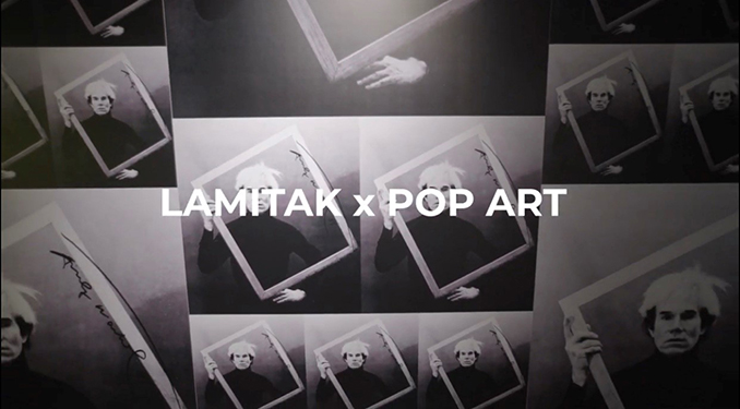 Lamitak นำเสนอมิติใหม่ เปลี่ยนพื้นผิวลามิเนตสีเรียบให้มีลวดลายสวยงาม โดยใช้เทคนิคพิเศษ Custom Printed บนแผ่นลามิเนตผิวสัมผัสแบบด้าน หรือ Dri-matt ติดตั้งบนผนังของนิทรรศการ บอกเล่าเรื่องราวป๊อปอาร์ตด้วยหมึกคุณภาพสูง ซึ่งตลอดนิทรรศการผู้เข้าชมจะได้สัมผัสพื้นผิวลามิเนตที่ยาวกว่า7.5 เมตรในส่วนของภาพดอกไม้ รวมถึงผลงานซิกเนเจอร์ทั้งหมด 6 จุด ร่วมสร้างสรรค์โดยแบรนด์ Lamitak ได้แก่;
