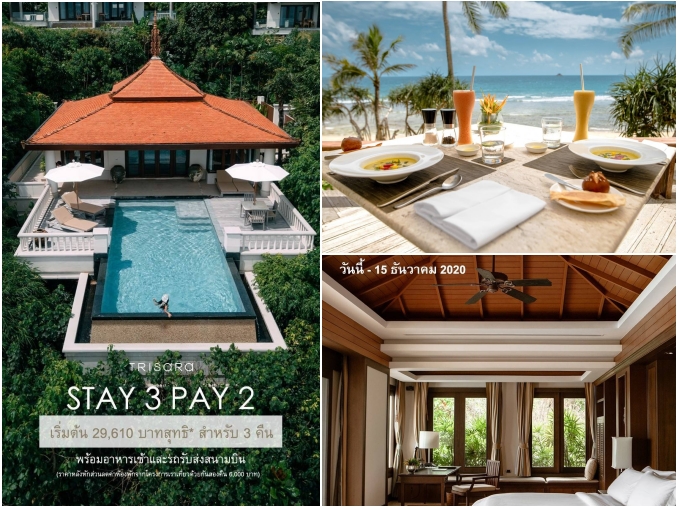 ช่องทางการสำรองห้องพัก: https://trisara.com/special/stay3pay2/th