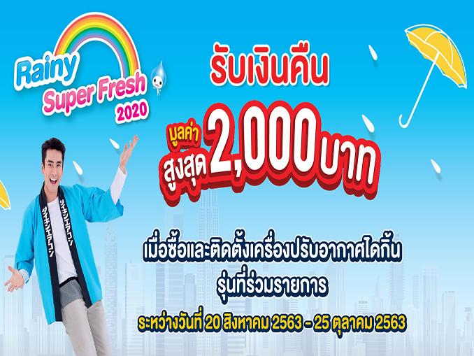 สมพร จันกรีนภาวงศ์ ผู้ช่วยกรรมการผู้จัดการ บริษัทสยามไดกิ้นเซลส์ จำกัดในฐานะผู้นำนวัตกรรมด้านระบบปรับอากาศระดับโลก เปิดเผยว่า บริษัทได้เปิดตัวแคมเปญต้อนรับหน้าฝน “Rainy Super Fresh 2020” เพิ่มความคุ้มค่าให้ผู้บริโภค เมื่อซื้อเครื่องปรับอากาศไดกิ้นรุ่นที่ร่วมรายการ รับสิทธิ์เงินคืนสูงสุด 2,000 บาท ตั้งแต่วันที่ 20 สิงหาคม – 25 ตุลาคม 2563 ตลอดระยะเวลา 2 เดือน