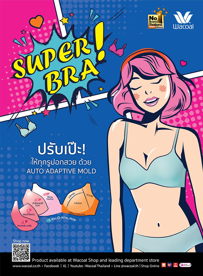 Wacoal Super Bra มีจำหน่ายแล้วที่วาโก้ช็อปและเคาน์เตอร์วาโก้ ทั่วประเทศ พร้อมช่องทางออนไลน์ Wacoal Shop Online, Lazada, Shopee, JD central, Central Online