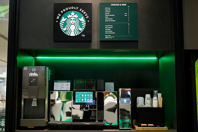 “We Proudly Serve Starbucks™” ในรูปแบบบริการตนเอง พร้อมระบบการชำระเงิน