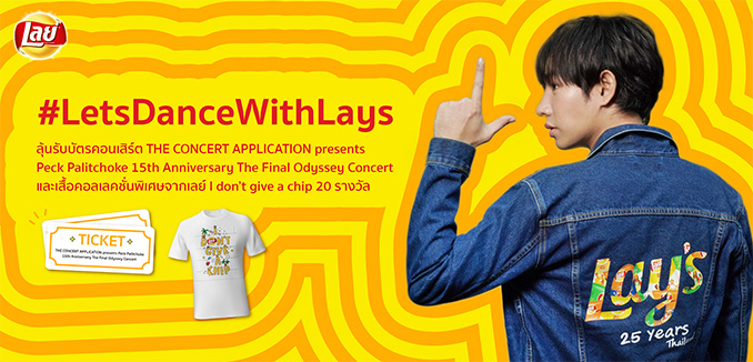 ลุ้นรับบัตรคอนเสิร์ต THE CONCERT APPLICATION presents Peck Palitchoke 15th Anniversary The Final Odyssey Concert และ เสื้อยืดลาย I don't give a chip จากเลย์โดยสามารถร่วมกิจกรรมได้ระหว่างวันที่ 18 กันยายน 2563 – 7 ตุลาคม 2563