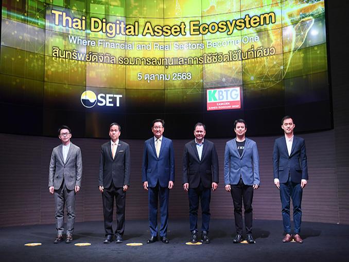 เรืองโรจน์ พูนผล ประธาน กสิกร บิซิเนส-เทคโนโลยี กรุ๊ป (KBTG) และ ภากร ปีตธวัชชัย กรรมการและผู้จัดการ ตลาดหลักทรัพย์แห่งประเทศไทยร่วมแถลงข่าวการพัฒนาแพลตฟอร์มสินทรัพย์ดิจิทัลครบวงจรบนเทคโนโลยีประมวลผลและจัดเก็บแบบกระจายศูนย์ (Distributed Ledger Technology) ครอบคลุมตั้งแต่การเชื่อมต่อกับระบบเสนอขายโทเคนดิจิทัล ศูนย์ซื้อขายสินทรัพย์ดิจิทัล รวมถึงบริการกระเป๋าสินทรัพย์ดิจิทัล เพิ่มโอกาสความหลากหลายของการระดมทุนและลงทุน ต่อยอดความคิดสร้างสรรค์และการเติบโต ตอบสนองไลฟ์สไตล์ยุคดิจิทัล โดยKBTGเป็นพันธมิตรร่วมพัฒนารายแรก คาดเริ่มให้บริการได้ในปี2564ณ ตลาดหลักทรัพย์แห่งประเทศไทย เมื่อเร็วๆ นี้