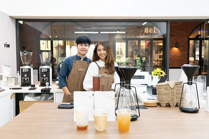จตุพงษ์ จาตุรวงศ์ ผู้จัดการทั่วไป อาคารเอ็มไพร์ ทาวเวอร์ (Empire Tower) อาคารสำนักงานภายใต้การบริหารงานของแอสเสท เวิรด์ คอร์ปอเรชั่น (AWC) มอบดอกไม้แสดงความยินดี กับคุณธีรารัตน์ ตรีรัตน์ ผู้บริหารร้าน RISE CAFÉ คาเฟ่เปิดใหม่เอาใจชาวออฟฟิศย่านสาทร พร้อมตกแต่งร้านแบบเรียบง่ายสไตล์มินิมอล สะท้อนแนวคิดคอฟฟี่คาเฟ่ของญี่ปุ่นที่จัดเตรียมเมล็ดกาแฟให้เลือก 2 แบบ ทั้ง Medium และ Dark