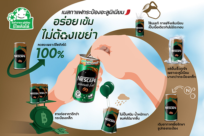 ธนธร พันพานิชย์กุล ผู้จัดการฝ่ายการตลาดอาวุโส กลุ่มผลิตภัณฑ์กาแฟพร้อมดื่ม บริษัท เนสท์เล่ (ไทย) จำกัด เปิดเผยว่า “เราภูมิใจมากครับที่ได้นำเสนอนวัตกรรมบรรจุภัณฑ์ ‘เนสกาแฟ กระป๋องอะลูมิเนียม’ ที่สามารถรีไซเคิลได้ 100% ให้กับผู้บริโภคไทย นับเป็นการเริ่มต้นที่ดีของเนสกาแฟ ในฐานะผู้ผลิตในการพัฒนาบรรจุภัณฑ์ที่เป็นมิตรต่อสิ่งแวดล้อมและส่งเสริมเศรษฐกิจหมุนเวียน โดยในปีที่แล้ว เราเริ่มเปลี่ยนเนสกาแฟกระป๋อง ลาเต้ และแบล็คไอซ์ให้เป็นกระป๋องอะลูมิเนียม ซึ่งได้การตอบรับจากผู้บริโภคอย่างดีเยี่ยม และตามมาด้วยเนสกาแฟกระป๋อง เอสเปรสโซ โรสต์ในปีนี้ เพื่อตอบโจทย์ผู้บริโภคได้ครบทุกรสชาติ สุดท้ายนี้ ผมขอเชิญชวนคอกาแฟมาดื่มเนสกาแฟกระป๋อง อร่อย ไม่ต้องเขย่า และทิ้งอย่างถูกวิธี เพื่อให้นำไปรีไซเคิลกันนะครับ เพียงเราช่วยกันเปลี่ยนแปลงเล็กๆ เพื่อทำให้โลกของเราน่าอยู่ยิ่งขึ้น และสร้างสรรค์เมืองไทยไร้ขยะครับ”