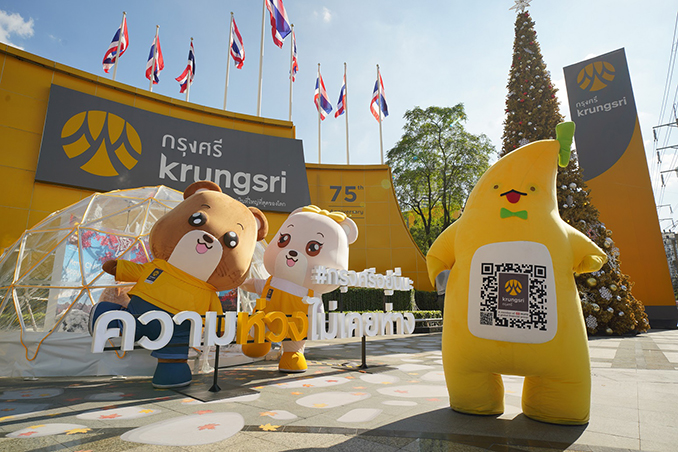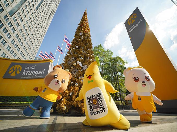 มิ่งขวัญ พัฒนวงศ์ ผู้ช่วยกรรมการผู้จัดการใหญ่ ผู้บริหารสายงานบริหารแบรนด์และการตลาดองค์กร ธนาคารกรุงศรีอยุธยา จำกัด (มหาชน) เปิดเผยว่า “กรุงศรีได้เตรียมมอบความสุขพิเศษให้กับคนไทยในช่วงเทศกาลคริสต์มาส ส่งท้ายปีเก่าต้อนรับปีใหม่อย่างต่อเนื่อง ปีนี้ก็เช่นกัน โดยได้จัดกิจกรรมส่งความสุขตลอดเดือนธันวาคม สะท้อนแนวคิด “ความห่วงไม่เคยห่าง กรุงศรีอยู่นี่นะ” และเพื่อเป็นการส่งความสุขให้ทั่วถึงคนไทยได้มากที่สุด จึงมีทั้งกิจกรรมบนช่องทางออนไลน์และกิจกรรมออนกราวด์ ให้ทุกคนได้มีโอกาสยิ้มรับความสุขและความสนุกสนานส่งท้ายปี โดยประดับไฟพื้นที่ด้านหน้าของสำนักงานใหญ่ พระราม 3 และอาคารสำนักงานเพลินจิตของกรุงศรี ด้วยต้นคริสต์มาสสีทองขนาดใหญ่ จำลองบรรยากาศและกลิ่นอายสไตล์ญี่ปุ่นด้วยซุ้มโทริอิ พร้อม Snow Globe ที่ทุกคนสามารถเข้าไปถ่ายรูปได้ฟรี ถือเป็นอีกหนึ่งจุดเช็คอินกลางกรุงที่เชิญชวนให้ประชาชนมาเดินเที่ยวถ่ายรูป และเตรียมพบกับเซอร์ไพรส์ความสุขจากมาสคอตชื่อดัง ‘น้องกล้วยกรุงศรี’ ที่ครั้งนี้ไม่ได้มาคนเดียว แต่จะมาแนะนำเพื่อนร่วมแก๊ง ‘บิลลี่’ หมีสุดเท่ ทันสมัย เชี่ยวชาญเรื่องเงินและเทคโนโลยี และ ‘เบลล่า’ หมีสุดน่ารัก ที่มาพร้อมความร่าเริง เป็นมิตร และชอบช่วยเหลือ โดยทั้งสามเป็นตัวแทนทำหน้าที่ส่งมอบความสุขและความห่วงให้กับลูกค้ากรุงศรีอย่างต่อเนื่อง โดยภารกิจแรกสำหรับในช่วงเทศกาลแห่งความสุขส่งท้ายปี ทั้งสามจะออกสร้างความสุขในสถานที่จุดเช็คอินต่างๆ กลางกรุง เพื่อส่งมอบความสุขและของขวัญแทนความห่วงใยจากกรุงศรี และในส่วนออนไลน์ กรุงศรียังเตรียมออกสติ๊กเกอร์ชุดใหม่ เพื่อให้ประชาชนทั่วไปได้ดาวน์โหลดมาส่งต่อความห่วงใยและความสุขให้แก่กันในช่วงเทศกาลอีกด้วย”