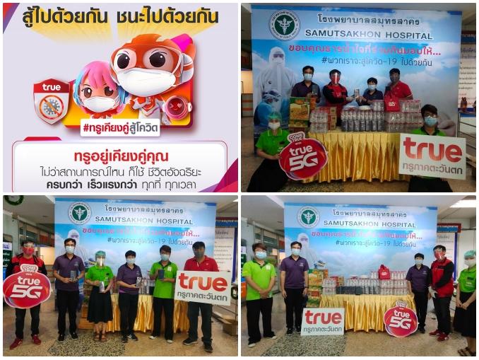 กลุ่มทรู เดินหน้าเคียงคู่คนไทยให้ชนะ โควิด-19 ไปด้วยกัน ล่าสุด กลุ่มทรู โดย นายภารดร หมุยจินดา Senior Area Owner จ.สมุทรสาคร ได้ส่งมอบสมาร์ทโฟน พร้อมเน็ตฟรี 20GB โทรฟรีทุกเครือข่าย จำนวน 10 เครื่อง แก่โรงพยาบาลสมุทรสาคร โดยนางณหทัย จุลกะรัตน์ ผู้ช่วยผู้อำนวยการด้านการจัดระบบบริการปฐมภูมิ สำหรับใช้ในกิจการของอาสาสมัครสาธารณสุขต่างด้าว (อสต.) เพื่อใช้ลงพื้นที่สนับสนุนการตรวจหาเชื้อเชิงรุกและประสานงานด้านสาธารณสุขกับเจ้าหน้าที่ส่วนกลาง อีกหนึ่งธารน้ำใจในการสู้ภัยโควิด-19 ที่กำลังแพร่ระบาดหนักในมหาชัย อีกทั้งยังได้มอบน้ำดื่ม อาหารแห้ง และหน้ากากอนามัย เพื่อช่วยเหลือพี่น้องแรงงานชาวเมียนมาร์ในพื้นที่ด้วย