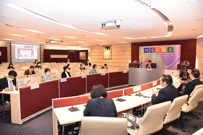 อว. มีนโยบายในการสนับสนุนให้มหาวิทยาลัยขับเคลื่อนการดำเนินงานที่สำคัญ 4 เรื่อง ได้แก่ 1.มหาวิทยาลัยสู่ตำบล สร้างรากแก้วให้ประเทศ 2. การพลิกโฉมมหาวิทยาลัย (Reinventing University) 3. มหาวิทยาลัย : ขั้วความเจริญเศรษฐกิจเชิงพื้นที่ (University as a Marketplace) และ 4.อว. ส่วนหน้า ซึ่งทั้ง 4 เรื่อง ตนได้ให้แนวทางในการดำเนินงาน ดังนี้ 1. โครงการมหาวิทยาลัยสู่ตำบลฯ มีความเกี่ยวข้องกับโครงการขับเคลื่อนไทยไปด้วยกัน มีผู้ว่าราชการจังหวัดเป็นหัวหน้า โดยอาศัยความร่วมมือจากทุกภาคส่วน ซึ่งการดำเนินงานในลักษณะนี้ จะทำให้มหาวิทยาลัยมีโอกาสและบทบาทมากขึ้นในการพัฒนาจังหวัดที่ชัดเจน โดยให้ อว.ส่วนหน้า ทำหน้าที่เป็นหน่วยราชการภูมิภาคของ อว. เพื่อพัฒนาทั้งจังหวัดและพัฒนามหาวิทยาลัยเอง 2.ให้ปรับรูปแบบการทำงาน จากเดิมที่เป็นการพัฒนาแบบพื้นฐานใช้แรงงานราคาถูก เปลี่ยนเป็นการพัฒนาที่ใช้นวัตกรรมในการสร้างมูลค่าเพิ่ม และเน้นการทำงานแบบรวมพลังของคนในมหาวิทยาลัย เพื่อการพัฒนาประเทศให้พ้นกับดักรายได้ปานกลาง 3. มหาวิทยาลัย มีงานวิจัย เทคโนโลยีและนวัตกรรมเป็นจำนวนมาก ซึ่งหลายเรื่องสามารถนำมาต่อยอดและใช้ประโยชน์ในเชิงพาณิชย์และเชิงสังคมได้ แต่ยังขาดการประชาสัมพันธ์ในภาพรวมของ อว. ทำให้ไม่เกิดผลกระทบ ในวงกว้างเท่าที่ควร ดังนั้น ควรมีการประชาสัมพันธ์อย่างต่อเนื่อง โดยนำเสนอผลลัพธ์ ผลกระทบที่ประชาชนได้รับมากกว่าข้อมูลทางสถิติทั่วไป 4.การพลิกโฉมมหาวิทยาลัย เป็นการปรับบทบาทของมหาวิทยาลัยให้มีความสำคัญมากขึ้นในการพัฒนาประเทศ บัณฑิตได้รับการพัฒนาทักษะ ที่จำเป็นสำหรับการมีงานทำ