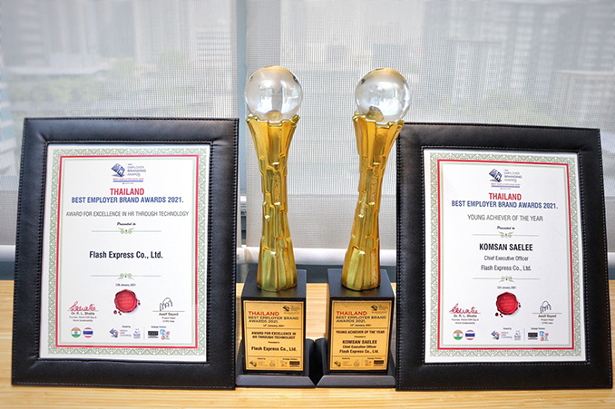 แฟลช เอ็กซ์เพรส ผู้ให้บริการขนส่งพัสดุสัญชาติไทยและผู้ให้บริการด้าน อีคอมเมิร์ซแบบครบวงจร ได้รับ 2 รางวัล คือ Young Achiever of the Year (รางวัลผู้บริหารระดับสูงรุ่นใหม่ที่ประสบความสำเร็จแห่งปี) และ Award for Excellence in HR through Technology (รางวัลความเป็นเลิศด้านเทคโนโลยีการบริหารทรัพยากรบุคคลยอดเยี่ยมแห่งปี) จาก Thailand Best Employer Brand Awards 2021 หรือ องค์กรนายจ้างดีเด่นระดับประเทศ โดยสถาบัน Employer Branding Institute ซึ่งแฟลช เอ็กซ์เพรส ถือเป็นบริษัทขนส่งสัญชาติไทยเพียงรายเดียวที่คว้า 2 รางวัลดังกล่าว สะท้อนความเป็นองค์กรคนรุ่นใหม่ ที่มีวิสัยทัศน์ก้าวไกล และนำเทคโนโลยีเข้ามายกระดับการบริหารงานในองค์กร