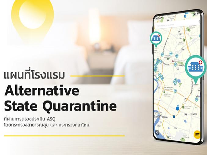 โดยคลิกลิงค์เพื่อดูชั้นข้อมูลพิกัดโรงแรม Alternative State Quarantine บนแผนที่ประเทศไทยออนไลน์ http://map.nostramap.com/NostraMap/?layer/asq/th ทั้งนี้ราคาในแอปพลิเคชันอาจมีการเปลี่ยนแปลงขึ้นอยู่กับโปรโมชันของโรงแรมและช่วงเวลาการจองของผู้ใช้งาน