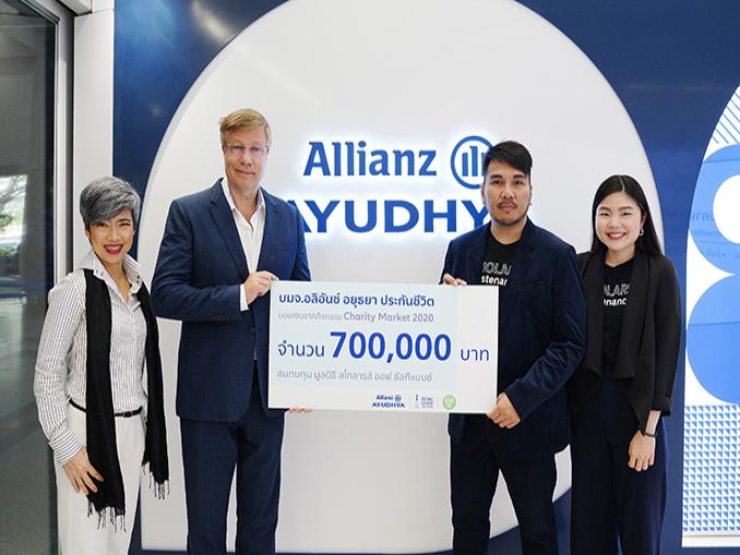 มร.โทมัส วิลสัน (ที่สองจากซ้าย) กรรมการผู้จัดการใหญ่และประธานเจ้าหน้าที่บริหาร และ พัชรา ทวีชัยวัฒนะ (ซ้าย) รองกรรมการผู้จัดการใหญ่ สายงานบริหารงานลูกค้า บมจ.อลิอันซ์ อยุธยา ประกันชีวิต มอบเงินจากกิจกรรม Charity Market 2020 จำนวนเงิน 100,000 บาท และอลิอันซ์ อยุธยา สบทบทุน 600,000 บาท รวมเป็นเงิน 700,000 บาท มอบให้กับ มูลนิธิสโกลารส์ ออฟ ซัสทีแนนซ์ (Scholars of Sustenance Foundation) ที่มุ่งมั่นในการแก้ไขปัญหาขยะอาหาร และเสริมสร้างความมั่นคงทางอาหารภายในประเทศไทยผ่านโครงการ ‘รักษ์อาหาร’ เพื่อตอกย้ำการดำเนินธุรกิจตามแนวทางการพัฒนาอย่างยั่งยืน มุ่งสร้างการมีส่วนร่วมเพื่อพัฒนาสิ่งแวดล้อมและสังคม โดยมี มร.เจมส์ เลย์สัน(ที่สองจากขวา) กรรมการผู้จัดการ และ นันทพร ตีระพงศ์ไพบูลย์(ขวา) ผู้จัดการฝ่ายระดมทุน มูลนิธิสโกลารส์ ออฟ ซัสทีแนนซ์ รับมอบ ณ อาคารเพลินจิต ทาวเวอร์ เมื่อเร็วๆนี้