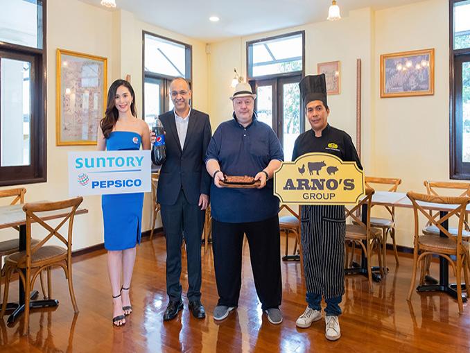 ล่าสุดบริษัท ซันโทรี่ เป๊ปซี่โค เบเวอเรจ (ประเทศไทย) จำกัด จับมือกับ บริษัท อาโนส์ กรุ๊ป 2020 จำกัด นำโดย นายอาโนลด์ คาเร่ เชฟชาวฝรั่งเศส เจ้าของร้านอาโนส์บุชเชอร์ แอนด์ อีทเทอรี่ ผู้มีความเชี่ยวชาญด้านการบ่มเนื้อที่เป็นเอกลักษณ์และคร่ำหวอดในวงการเนื้อดรายเอจมายาวนานกว่า 30 ปี และคุณศุภนิจ จัยวัฒน์ ผู้ก่อตั้งบริษัท อาโน อีทเทอรี่ จำกัด และบริษัท อาโนส์ กรุ๊ป 2020 จำกัด (ร้านอาโนส์สเต็ก, ร้านอาโนส์เบอร์เกอร์, ร้านอาโนส์พิซซ่า และร้านอโณไทย) ซึ่งปัจจุบันมีทั้งหมดกว่า 17 สาขาทั้งในกรุงเทพฯ พัทยา และเชียงใหม่ โดยความร่วมมือในครั้งนี้เป็นการนำเครื่องดื่มในเครือซันโทรี่ เป๊ปซี่โค อาทิเช่น ‘เป๊ปซี่’ ‘เป๊ปซี่’แมกซ์ ‘ลิปตัน’ ไอซ์ที เลมอน ‘เซเว่น-อัพ’ และ’เซเว่น-อัพ’ ฟรี ให้บริการในร้านอาโนส์ทุกสาขา