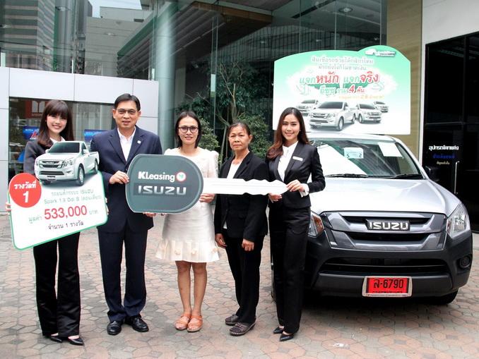 ศาศวัต วีระปรีย ประธานกรรมการบริหาร บริษัท ลีสซิ่งกสิกรไทย จำกัด มอบรางวัลที่ 1 รถยนต์กระบะ ISUZU Spark 1.9 Ddi B คันที่ 4 มูลค่า 533,000 บาทให้แก่ นางสาวเพ็ญประภา บัวดง จากจังหวัดขอนแก่น ผู้โชคดีจากการจับรางวัลในแคมเปญ “สินเชื่อรถช่วยได้กสิกรไทย แจกหนัก แจกจริง” ครั้งที่ 4 ณ โชว์รูมอีซูซุ พระนคร ถนนพหลโยธิน กรุงเทพฯ