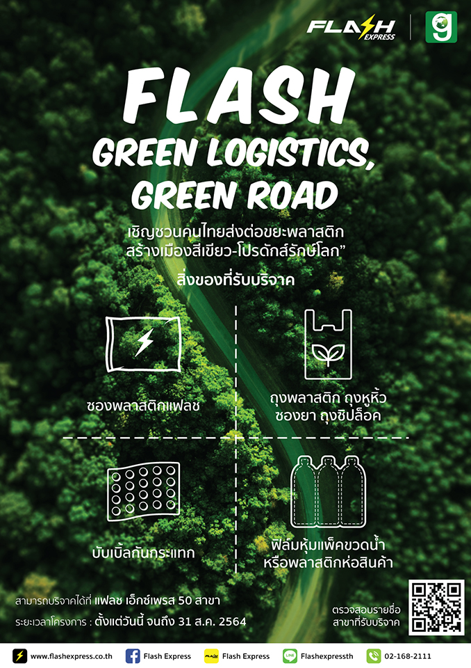 โครงการ GREEN ROAD ก่อตั้งขึ้นด้วยวัตถุประสงค์หลักคือ การนำพลาสติก ซึ่งครั้งหนึ่งเคยเป็นสิ่งที่สร้างความสะดวกสบายให้กับผู้คน แต่ปัจจุบันกลายเป็นขยะพลาสติกที่ย้อนกลับมาสร้างความเดือดร้อนส่งผลกระทบต่อผู้คน สัตว์น้ำ รวมถึงสิ่งแวดล้อมทั้งทางตรงและทางอ้อม โครงการกรีนโร้ดจึงได้นำขยะพลาสติกเหล่านั้นมาผลิตเป็นอิฐบล็อกสำหรับปูถนน สร้างเมืองสีเขียว ทำให้เกิดประโยชน์ต่อส่วนรวม รวมถึงผลิตเป็นข้าวของเครื่องใช้ต่างๆ ที่เป็นโปรดักส์รักษ์โลก ไม่ว่าจะเป็นเก้าอี้และโต๊ะสนาม อิฐก่อผนัง กระเบื้องมุงหลังคา ในส่วนของ แฟลช เอ็กซ์เพรส จำกัด ผู้ให้บริการขนส่งสัญชาติไทยและ E-Commerce แบบครบวงจร ขนส่งเอกชนไทยรายแรกที่ก้าวสู่ยูนิคอร์นระดับสากล บริษัทฯ มีบรรจุภัณฑ์ที่ใช้ในการส่งพัสดุทั้งกล่องลูกฟูก และซองพลาสติก โดยกล่องลูกฟูกนั้นสามารถนำกลับมาใช้ซ้ำได้ (Recycle) แต่ซองพลาสติก เมื่อแกะหรือฉีกออกแล้วก็จะกลายเป็นขยะไปทันที จุดนี้จึงทำให้บริษัทฯ เล็งเห็นว่าควรสนับสนุน และรณรงค์การเปลี่ยนขยะพลาสติกเหล่านี้ให้กลับมามีคุณค่าอีกครั้ง ล่าสุดจึงดึงเอาจุด Drop Off ของแฟลช เอ็กซ์เพรส กว่า 50 แห่ง เป็นจุดรับบริจาคซองบรรจุพัสดุของแฟลช หรือถุงพลาสติกอื่นๆ รวมถึงบับเบิ้ลกันกระแทก, ฟิลม์หุ้มแพ็คขวดน้ำ และพลาสติกห่อสินค้า เพื่อส่งต่อไปยังโครงการกรีนโร้ดสามารถนำเอาขยะพลาสติกเหล่านั้นไปสร้างให้เกิดประโยชน์สูงสุดแก่สังคมต่อไป