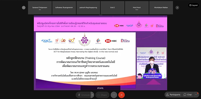 กระทรวงการอุดมศึกษา วิทยาศาสตร์ วิจัยและนวัตกรรม (อว.) สำนักงานพัฒนาวิทยาศาสตร์และเทคโนโลยีแห่งชาติ (สวทช.) โดยมูลนิธิเทคโนโลยีสารสนเทศตามพระราชดำริสมเด็จพระเทพรัตนราชสุดาฯ สยามบรมราชกุมารี จัดพิธีปฐมนิเทศโครงการ ไอซีทีเพื่อการเรียนรู้ตลอดชีวิตสำหรับชุมชนชายขอบ ประจำปี 2564 ผ่านสื่ออิเล็กทรอนิกส์แบบออนไลน์ขึ้น โดยมีหน่วยงานพันธมิตรทั้งจากภาครัฐและเอกชนร่วมสนับสนุนโครงการฯ เพื่อเพิ่มประสิทธิภาพในการจัดการเรียนการสอนและช่วยยกระดับคุณภาพการศึกษาของโรงเรียนตำรวจตระเวนชายแดน