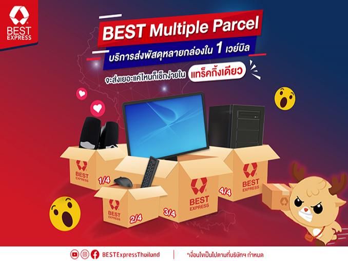 BEST Express (เบสท์ เอ็กซ์เพรส) ผู้ให้บริการขนส่งพัสดุด่วนทั่วไทย ภายใต้สโลแกน ไปไหน ไปกัน Everywhere, with you หนึ่งในห้าบริษัทขนส่งพัสดุด่วนเอกชนแถวหน้าของประเทศ ภายใต้การบริหารงานของ บริษัท เบสท์ โลจิสติกส์ เทคโนโลยี (ประเทศไทย) จำกัด เดินหน้าพัฒนากลยุทธ์การให้บริการขนส่งพัสดุด่วน ด้วยการออกบริการน้องใหม่เอาใจผู้ใช้บริการส่งพัสดุกับ BEST Express ทั่วไทย กับบริการ “BEST Multiple Parcel (เบสท์ มัลติเปิล พาร์เซิล)” หรือบริการส่งพัสดุหลายกล่องรวมกันใน 1 เวย์บิล สู่ปลายทางเดียว ซึ่งเป็นบริการที่ถูกออกแบบมาเพื่ออำนวยความสะดวกให้กับพ่อค้าแม่ค้าออนไลน์และลูกค้าทั่วไป ด้วยการสร้างความยืดหยุ่นในการจัดส่งพัสดุแก่ลูกค้าที่มีความประสงค์จะจัดส่งพัสดุแบบแยกชิ้นส่งหลายกล่องเนื่องด้วยพัสดุที่มีขนาดใหญ่และเกินมาตรฐานการจัดส่ง หรือจัดส่งพัสดุหลายชิ้นรวมกันใน 1 เวย์บิล เพื่อให้ง่ายต่อการติดตามพัสดุแบบแยกชิ้นส่งหลายกล่องไปยังพื้นที่ปลายทางเดียวกัน และป้องกันการสูญหายของพัสดุระหว่างทางการจัดส่งไปยังลูกค้าออนไลน์ที่สั่งจากแฟลตฟอร์มอีคอมเมิร์ซและช่องทางอื่นๆทั่วไป ซึ่งการออกบริการขนส่งพัสดุน้องใหม่ครั้งนี้ นับเป็นอีกหนึ่งบริการจาก BEST Express ที่ช่วยสร้างความหลากหลายในการเลือกใช้บริการและเพิ่มประสิทธิภาพการจัดส่งพัสดุแบบไม่มีสะดุดในการให้บริการสู่ลูกค้าผู้มีอุปการะคุณทุกท่านทั่วไทยที่ให้ความไว้วางใจเลือกใช้บริการของ BEST Express โดยบริการ BEST Multiple Parcel พร้อมให้บริการแล้วตั้งแต่วันนี้ทุกสาขาทั่วประเทศ