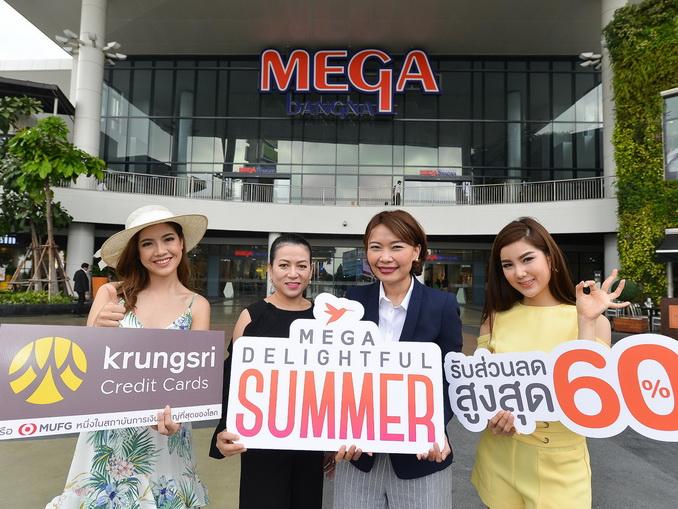 ปราณี มีจันทร์ (ที่ 2 จากซ้าย) ผู้อำนวยการอาวุโสฝ่ายการตลาด บริษัท บัตรกรุงศรีอยุธยา จำกัด ร่วมกับ สิรินฉัตร แสงศรี (ที่ 2 จากขวา) ผู้อำนวยการฝ่ายการตลาด ศูนย์การค้าเมกา บางนา จัดโปรโมชั่น “เมกา ดีไลท์ฟูล ซัมเมอร์” มอบสิทธิพิเศษ 2 ต่อให้กับสมาชิกบัตรเครดิตกรุงศรี ต่อที่ 1 รับส่วนลดสูงสุด 60% ต่อที่ 2 กินหรือ ช้อปครบ 2,000 บาทขึ้นไปต่อเซลล์สลิป รับบัตรกำนัลบาร์บีคิว พลาซ่า มูลค่า 100 บาท เมื่อใช้จ่ายที่ร้านค้าที่ร่วมรายการ ในศูนย์การค้าเมกาบางนา เพียงลงทะเบียนรับสิทธิ์เพื่อร่วมรายการบริเวณเคาน์เตอร์แลกของสมนาคุณ ชั้น 1 โซนบิ๊กซี ตั้งแต่ 1 มีนาคมถึง 31 พฤษภาคม 2560 โปรโมชั่นนี้สำหรับสมาชิกบัตรเครดิตกรุงศรีทุกประเภท บัตรเครดิตโฮมโปร วีซ่า แพลทินัม และบัตรเครดิตเอไอเอ วีซ่า
