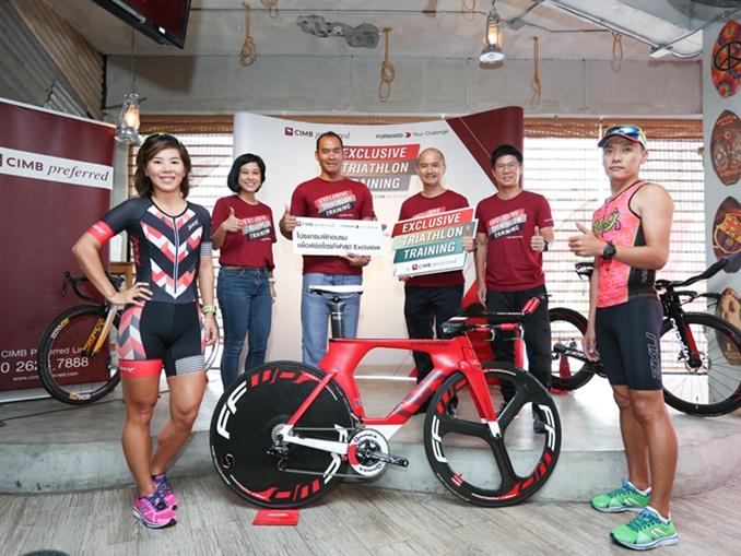 โดยโครงการ “Exclusive Triathlon Training by CIMB Preferred” เปิดให้เฉพาะลูกค้า CIMB Preferred ของธนาคารเท่านั้น สามารถสมัครเป็นสมาชิก CIMB Preferred เพียงเปิดบัญชีฝากประจำ 6 เดือน ขั้นต่ำ 1 ล้านบาท ก่อนจะร่วมเข้ารับการอบรมทั้งภาคทฤษฏี ภาคปฏิบัติ และซ้อมพร้อมกัน แบบใกล้ชิดกับโค้ชระดับประเทศ ทั้ง ว่ายน้ำ ปั่น วิ่ง เป็นเวลา 3 เดือน ระหว่างเดือนพ.ค.–ก.ค.2560 สามารถสมัครโดย ส่ง SMS พิมพ์ ET พร้อม ชื่อ-นามสกุล มาที่เบอร์ 454 5555 เปิดรับสมัครวันนี้ -9 พ.ค. จำนวน 30 ท่าน เงื่อนไขเป็นไปตามที่ธนาคารกำหนดสอบถามรายละเอียดกิจกรรมได้ที่ 080-228-2822 หรือ 061-569-4398 (เฉพาะวันทำการ) ติดตามรายละเอียดเพิ่มเติมได้ที่ https://www.cimbpreferred.com/index.php?ch=th_th_promo