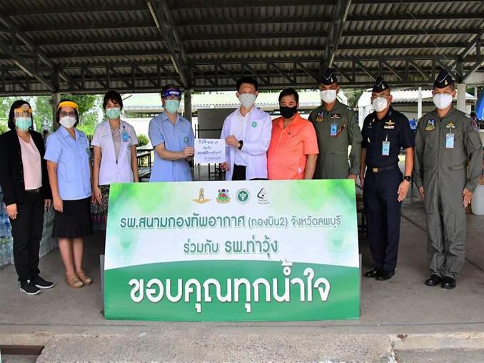 ทั้งนี้ รพ.สนามกองบิน2 (ท่าวุ้ง) มีจำนวนผู้ป่วยประมาณ 400 เตียง และมีบุคลากรค่อนข้างน้อย หากท่านใดประสงค์จะบริจาคเป็นเงินสามารถติดต่อแจ้งความประสงค์โดยตรงได้ที่ รพ.สนามกองบิน2 (ท่าวุ้ง) รวมถึงการบริจาคอาหารและเครื่องดื่มในแต่ละวัน