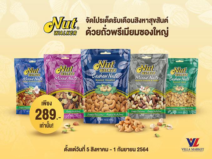 ฉลองเดือนสิงหาสุขสันต์วันแม่ด้วย ถั่วพรีเมียม นัท วอล์คเกอร์ ภายในวันที่ 5 สิงหาคม – 1 กันยายน 2564 ที่วิลล่า มาร์เก็ต ทุกสาขา สอบถามข้อมูลเพิ่มเติม โทร 02-813-0954-5 หรือติดตามข่าวสารและกิจกรรมต่างๆ ได้ที่ www.heritagethailand.com, www.facebook.com/NutwalkerTh และ IG: nutwalkerthailand