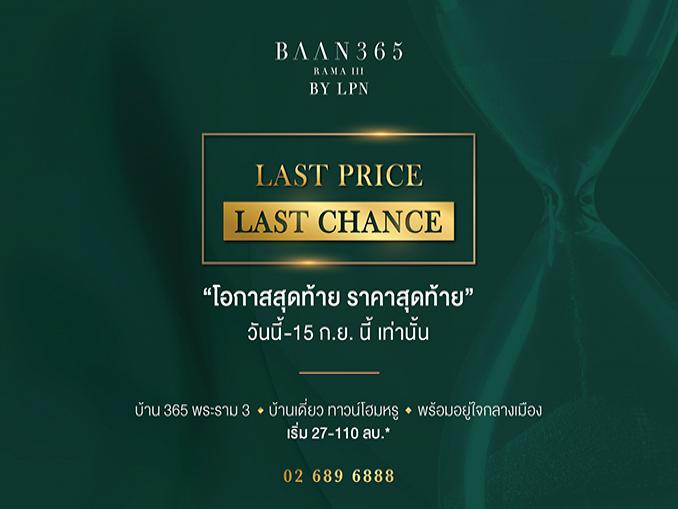 ครั้งนี้มากับข้อเสนอสุดพิเศษให้กับผู้ที่จองซื้อ “บ้าน 365 พระราม 3” ด้วยแคมเปญ "LAST PRICE LAST CHANCE" "โอกาสสุดท้าย ราคาสุดท้าย”โอกาสทองที่จะได้สัมผัสและเป็นเจ้าของโครงการบ้านหรูพร้อมอยู่ใจกลางเมือง ในราคาพิเศษที่สุดแห่งปี เริ่มตั้งแต่วันนี้-15ก.ย.นี้ (เงื่อนไขและราคาเป็นไปตามที่บริษัทกำหนดเฉพาะแปลงที่ร่วมรายการ*)