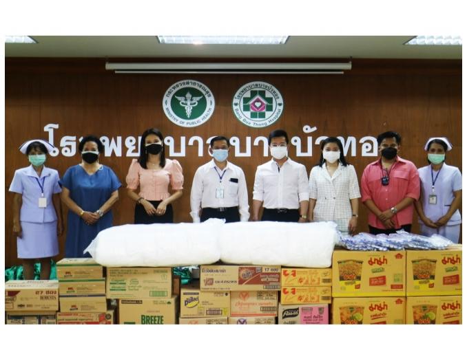 นายแพทย์พุฒิพงศ์ ภูมิสุวรรณ ผู้อำนวยการ AIC Clinic (ลำดับที่ 5 จากทางซ้าย) เข้ามอบ ชุด PPE และของอุปโภค บริโภคให้กับ นายแพทย์.ประพุทธ ลีลาพฤทธิ์ ผู้อำนวยการโรงพยาบาลบางบัวทอง (ลำดับที่ 4 จากทางซ้าย)เพื่อนำไปใช้กับผู้ป่วยที่โรงพยาบาลสนามในการดูแลของโรงพยาบาลบางบัวทอง โดยมี คุณกชกร นิมากรณ์ (ลำดับที่ 3 จากทางซ้าย), พญ. ช้องมาศ เลิศสิน (ลำดับที่ 6 จากทางซ้าย), เพ็ญศรี นิมากรณ์ (ลำดับที่ 2จากทางซ้าย) และ ดร.วโรดม ศิริสุข (ลำดับที่ 7 จากทางซ้าย ) ร่วมบริจาคในครั้งนี้ ที่ห้องประชุมสัตตบงกช อาคาร 3 ชั้น 3 โรงพยาบาลบางบัวทอง. เมื่อวันก่อน