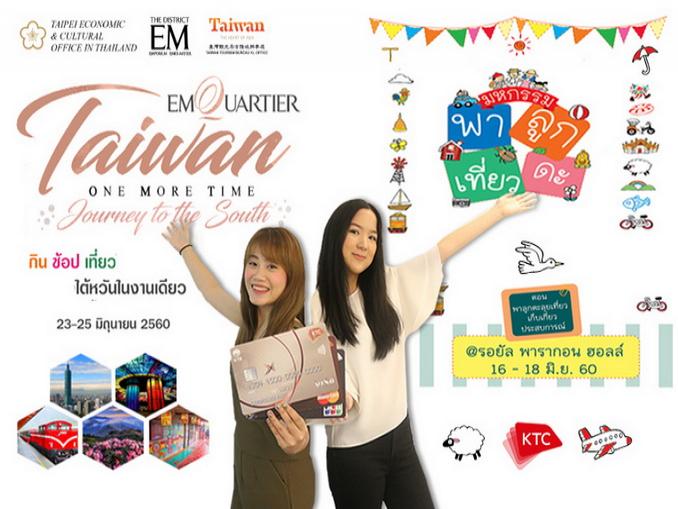- งานท่องเที่ยวไต้หวันด้วยตนเอง “Taiwan One More Time” ครั้งที่ 3 1) เมื่อสมาชิกใช้จ่ายผ่านบัตรเครดิต เคทีซีภายในงานตั้งแต่ 5,000 บาทขึ้นไป รับของกำนัล รวมมูลค่ากว่า 200,000 บาท 2) ลดเพิ่ม 15% เพียงใช้คะแนนสะสม KTC FORVER REWARDS เท่ายอดใช้จ่าย ณ ร้านค้าที่ร่วมรายการฯ 3) รับส่วนลดสุดคุ้มกับบริการท่องเที่ยว ทั้งบัตรโดยสารสายการบิน ห้องพักในราคาพิเศษ ที่บูธเคทีซีเวิลด์ และ 4) เพียงสมัคร บัตรเครดิตเคทีซี - บางกอก แอร์เวย์ส พร้อมมียอดใช้จ่ายตั้งแต่ 5,000 บาทขึ้นไป ภายใน 45 วัน หลังบัตรฯ ได้รับการอนุมัติ รับเลย!! บัตรกำนัลสตาร์บัคส์มูลค่า 200 บาท ระหว่างวันที่ 23 – 25 มิถุนายน 2560 ณ โซน M Gallery ชั้น M ศูนย์การค้าเอ็มควอเทียร์